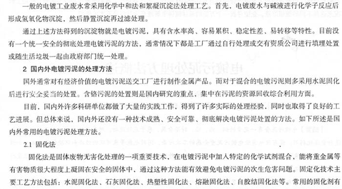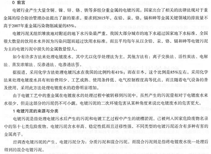 摘要——電鍍污泥含有一定量的銅、鎳、鉻、鋅等金屬,屬于危險廢物。對其中的金屬(尤其是重金屬)進行資源化利用,能有效地消除電鍍污泥重金屬的二次污染,同時也能帶來可觀的經(jīng)濟和環(huán)境效益。本文介紹了電鍍污泥的來源與分類,重點介紹了電鍍污泥的國內(nèi)外處理方法,為今后的研究提供一些思路,最大限度的減少重金屬污染。